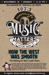 Join us on November 13th, 2017, from 6-8 PM at the Asheville FM Radio Station as we present How The West Was Smooth: The History Of West Coast Music. Seating is limited, so please register by emailing sarah@ashevillefm.org.